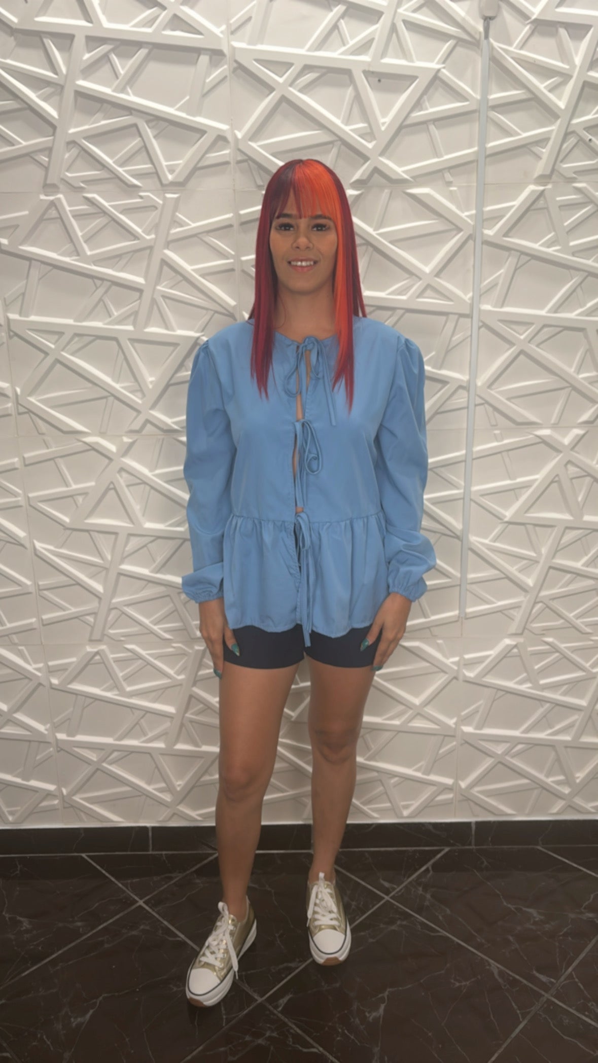 ¡Añade encanto a tu guardarropa con la fresca blusa Charlotte! Con su manga larga y tres lazos en la parte delantera, esta blusa en color azul cielo te hará sentir elegante y con estilo. Perfecta para cualquier ocasión, ¡seguro que será tu favorita!