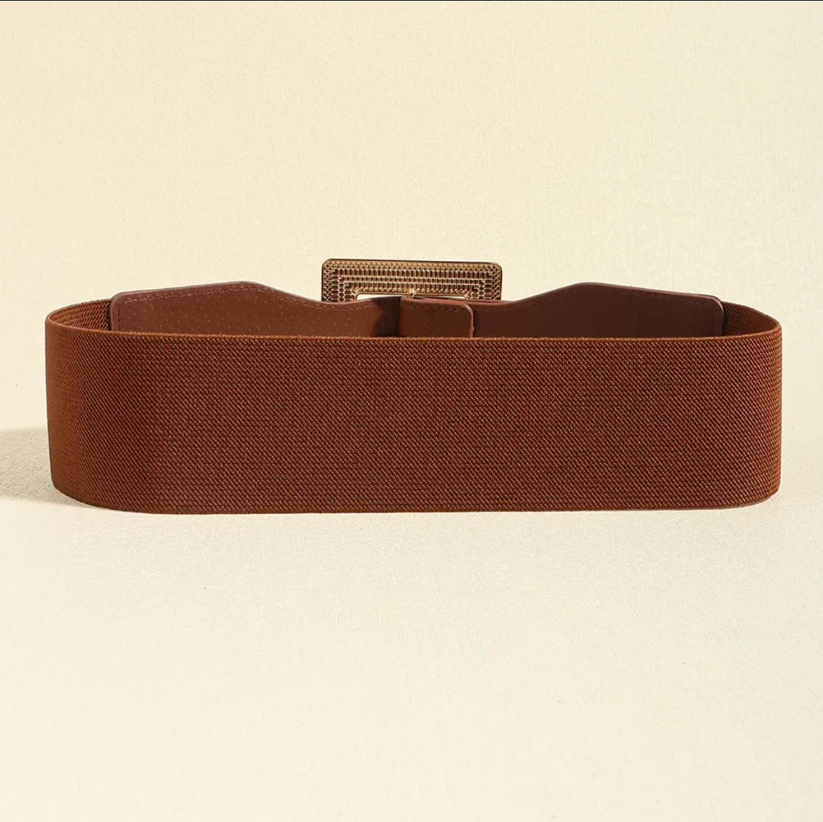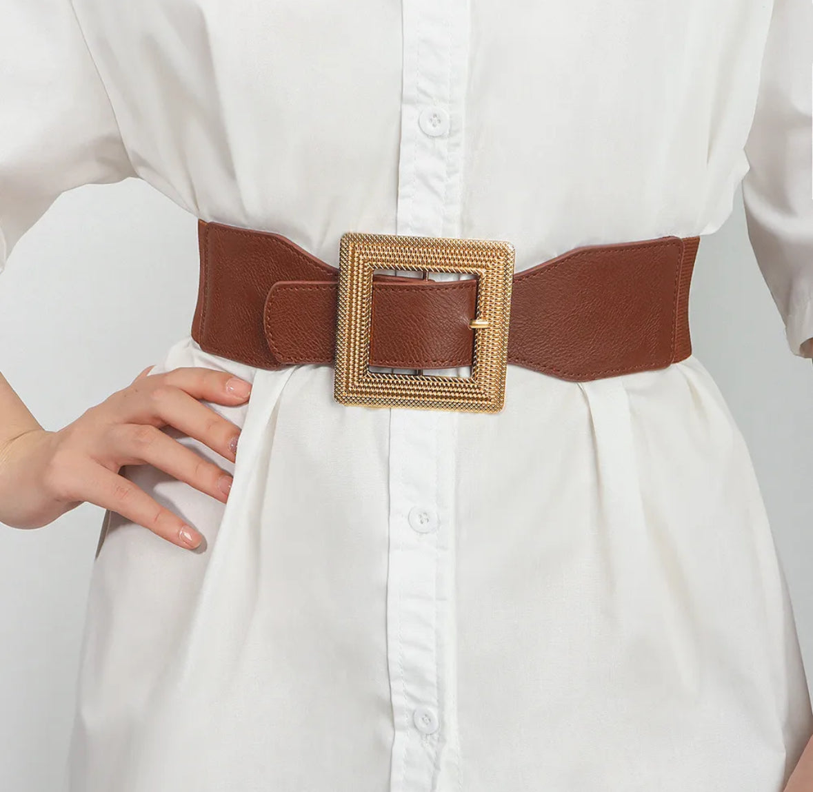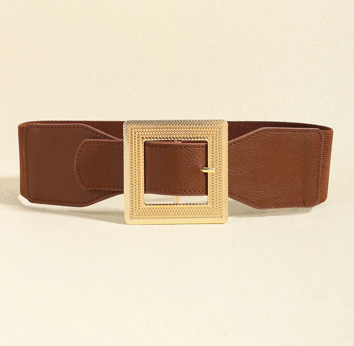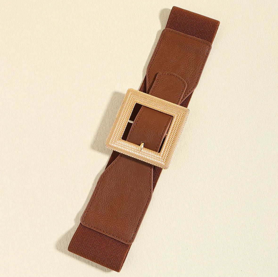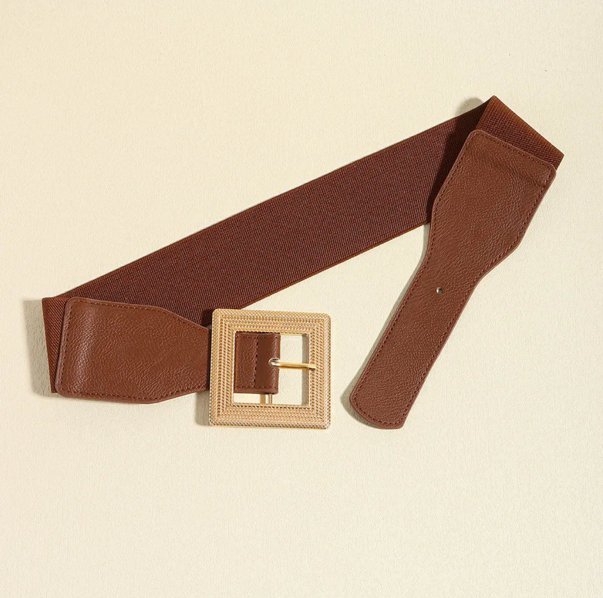Este cinturón de cuero sintético marrón caramelo, es una opción elegante y sofisticada. Su material elástico garantiza una gran comodidad y su versatilidad lo hace perfecto para cualquier atuendo. Un accesorio exclusivo para completar tu look con estilo y lujo.