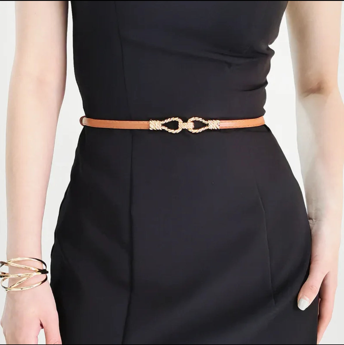 Cinturón fino de hebilla dorada (caramelo)