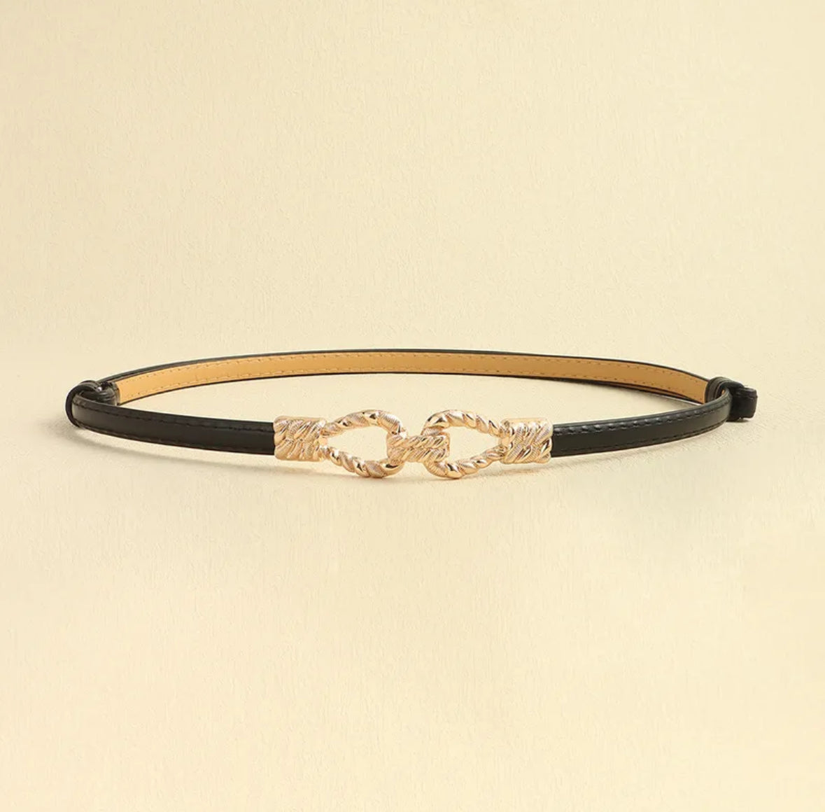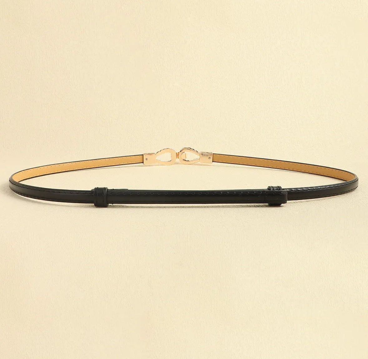 Este cinturón negro fino con hebilla dorada es un accesorio elegante y versátil para cualquier atuendo. Hecho con materiales de alta calidad, su diseño delgado y sutil acentúa tu cintura y añade un toque de sofisticación a tu estilo. Perfecto para cualquier ocasión, este cinturón te hará lucir impecable y a la moda.